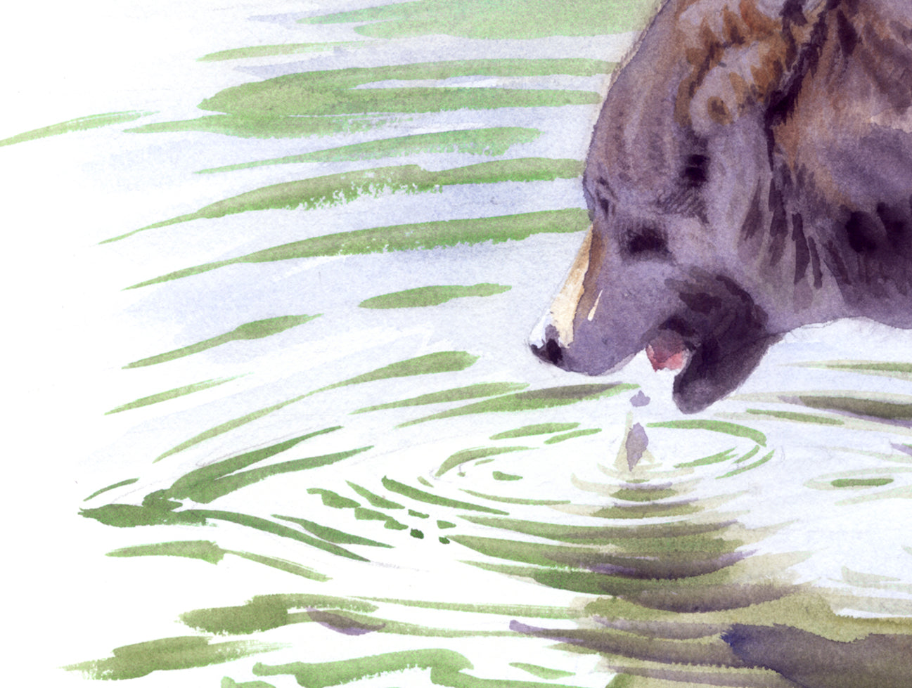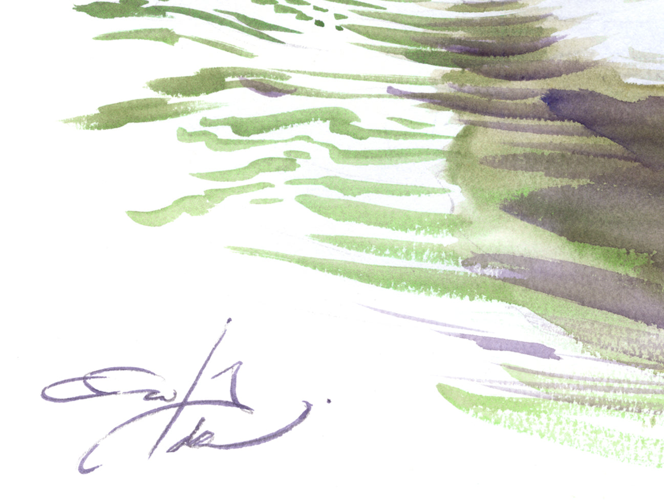 El pigmento en la acuarela, al representar el agua queda liberado del pincel. El agua del arroyo, la pausa, la necesidad básica, el vínculo con el paisaje.